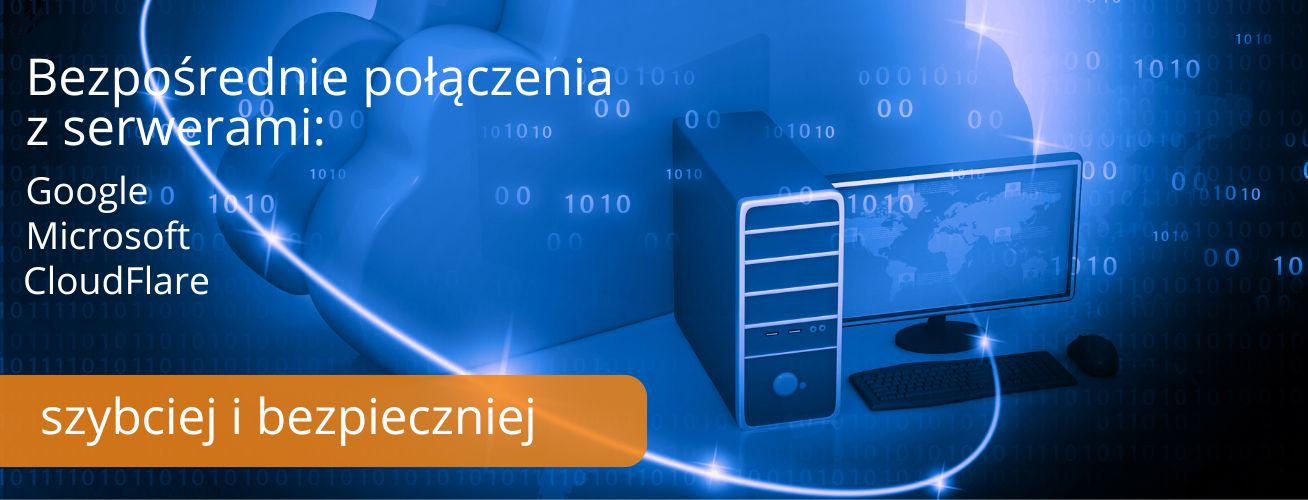 Bezpośrednie połączenia z serwerami Google, CloudFlare, Microsoft – szybki, stabilny i bezpieczny dostęp do usług w sieci.
